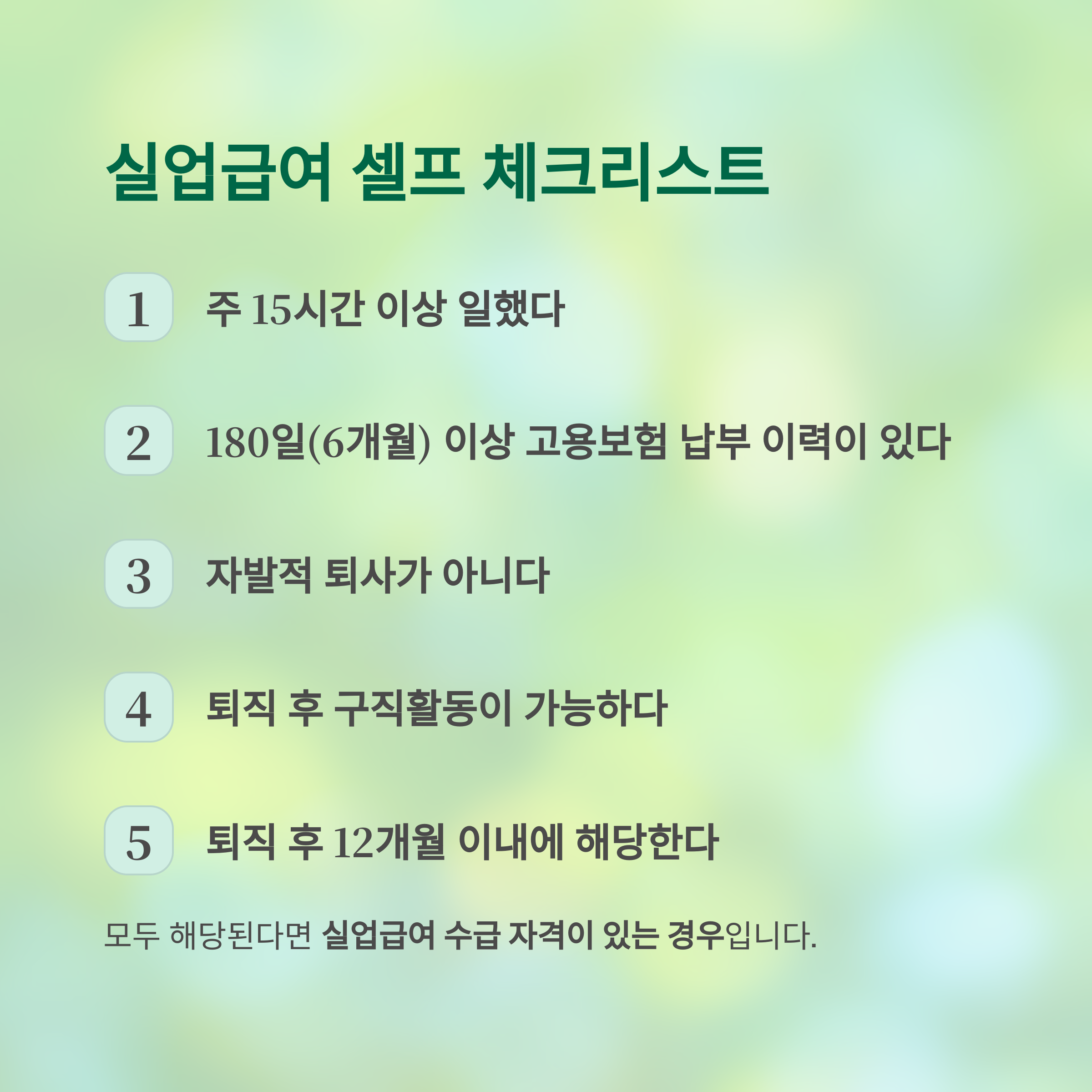 모두 해당된다면 실업급여 수급 자격이 있는 경우입니다.