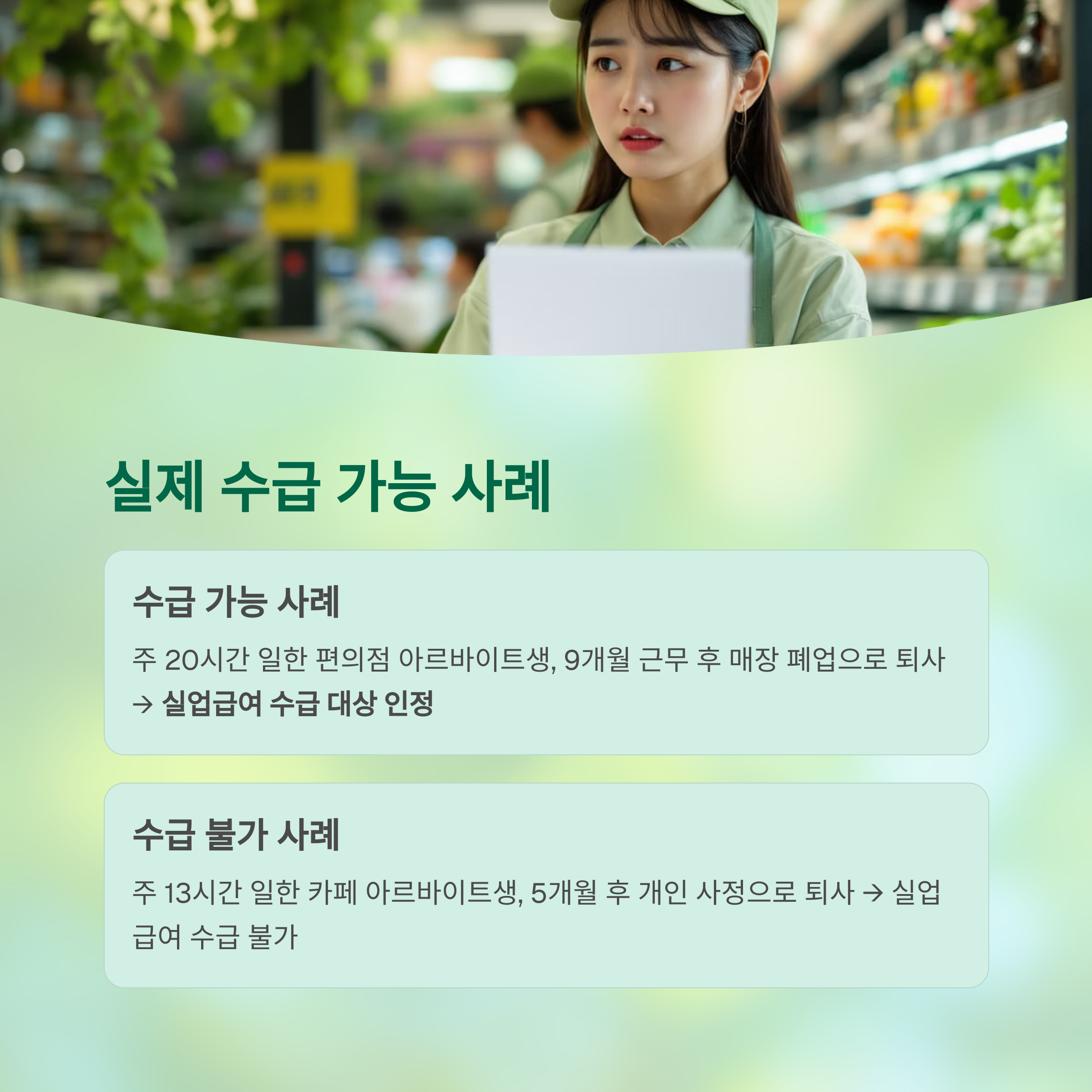 아르바이트생(단시간 근로자)도 일정 요건만 충족하면 수급 대상이 될 수 있습니다.